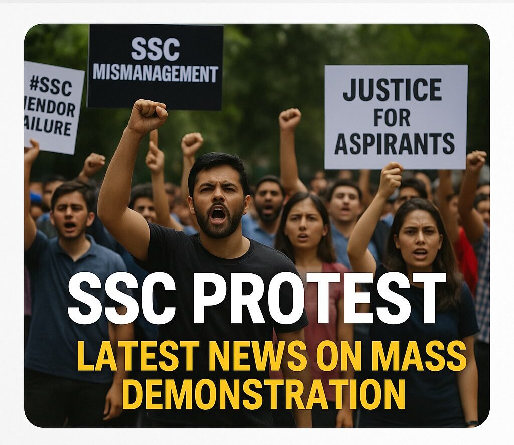 Staff Selection Commission (SSC) की Selection Post Phase 13 परीक्षा में भारी अव्यवस्थाओं के चलते देशभर के हजारों छात्र 31 जुलाई 2025 को दिल्ली के जंतर मंतर और CGO कॉम्प्लेक्स पर सड़कों पर उतर आए। छात्रों का आरोप है कि परीक्षा के दौरान तकनीकी खामियों, केंद्रों की मनमानी और प्रशासन की लापरवाही से उनका भविष्य दांव पर लग गया है।